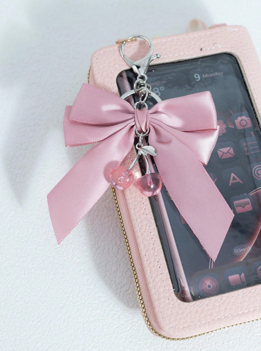 Cherry Bow Pearl Bag Charm – Cute Vintage Keychain Accessory for Women & Girls | Beaded Bracelet Pendant for Purse, Wallet, Car, Backpack