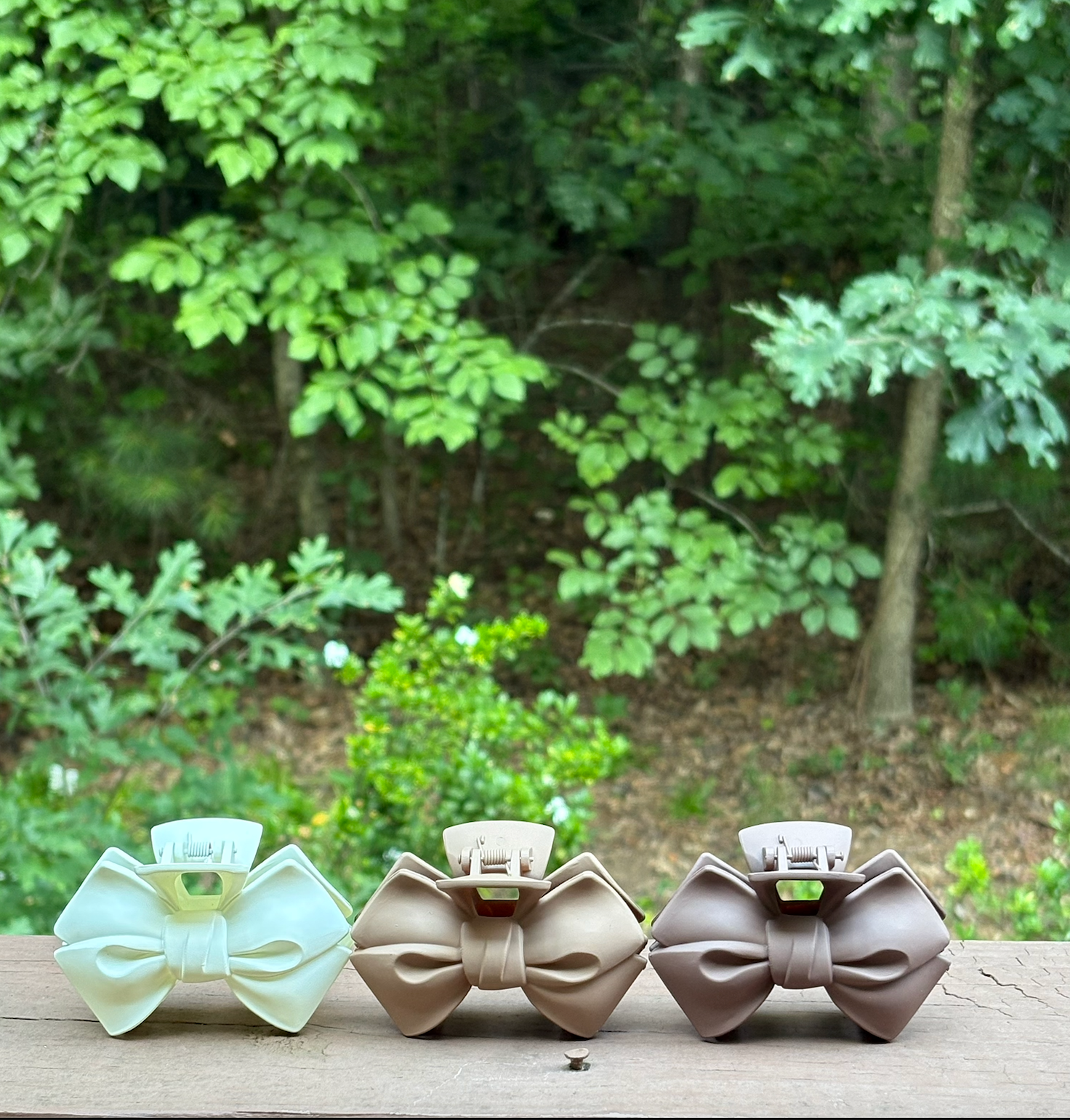 1 Pc Women’s 3.54in White, Khaki & Brown Bow Hair Claw Clip – Elegant & Stylish Hair Accessory