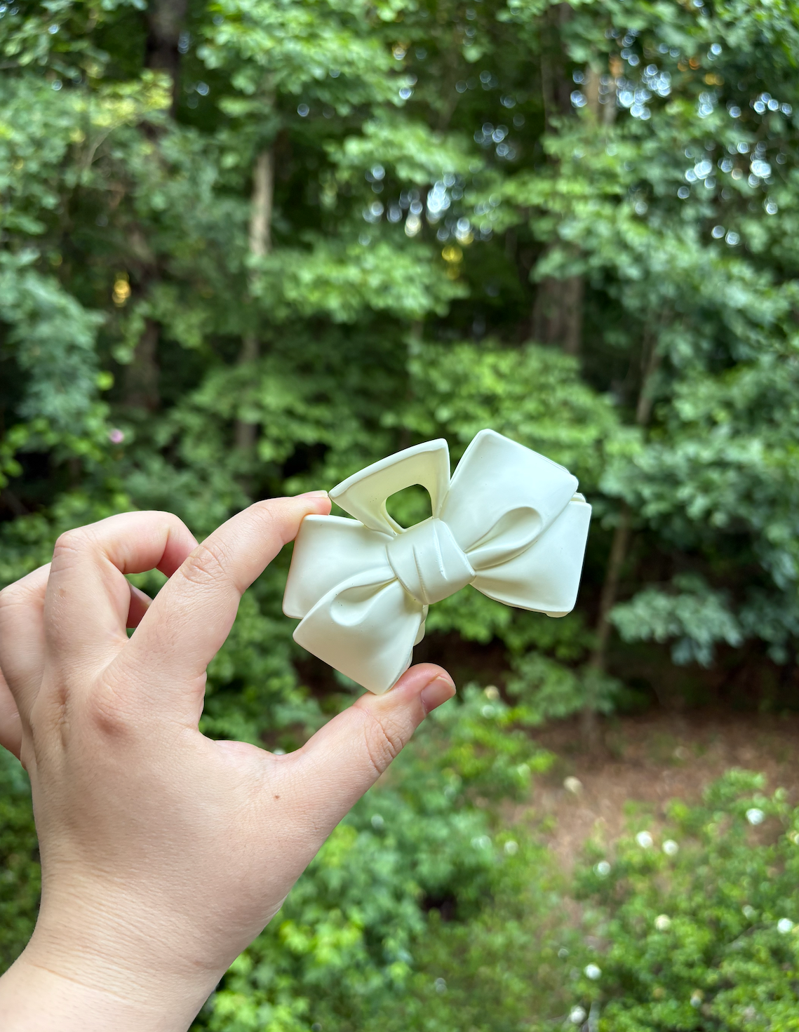 1 Pc Women 3.54in White Khaki Brown Bow Hair Claws Clips